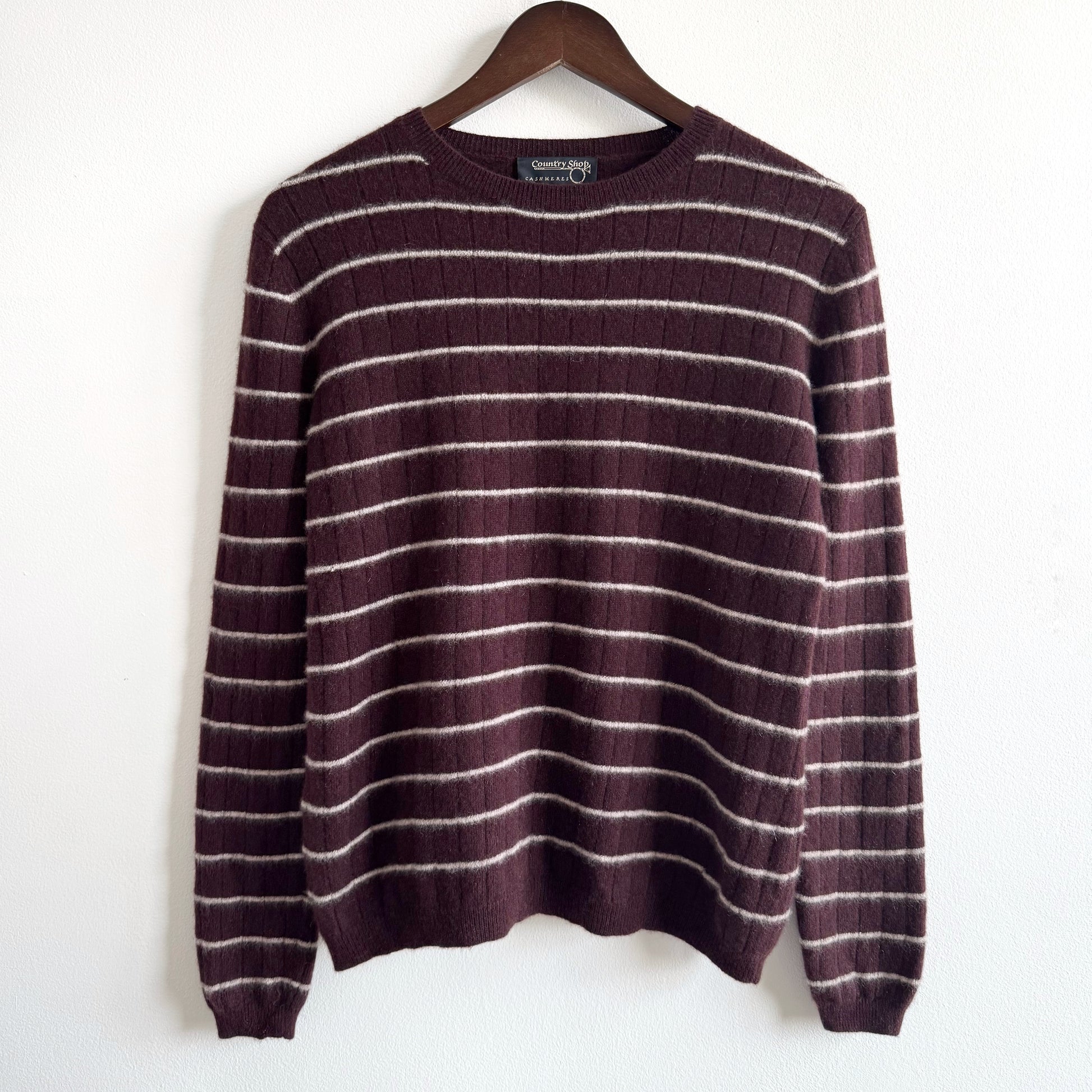 Cashmere Striped Crewneck Sweater in Chocolate Brown